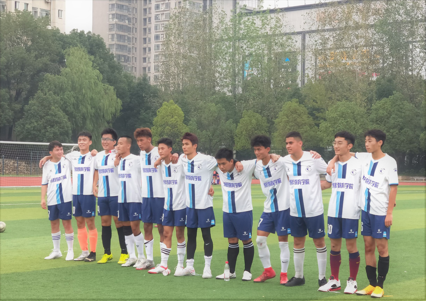 10月20日中午11:50,我院足球队与资环足球队在南湖操场进行比赛。在总结过几次比赛的经验后,我院足球队合作能力明显增强。在上半场次,我院球员激情澎湃,在赛中11号球员率先踢进一球,而后转身轴射又进一球,为我院球队增加士气!在临场结束时,我院球员7号又进一球,此后,我院球员拥抱欢呼。上半场比赛结果为3:0。在下半场次,我院球员更热血沸腾,尽管资环院球员紧密防守,我院13号球员精彩的中场远射成功进球。此后,资环院进一球。最终我院与资环院比赛成绩为4:1,我院赢得本场比赛。赛后,双方握手后比赛圆满结束。 10月25日中午13:00在南区操场中,我院迎来最后一场足球比赛。此次比赛是我院与外语学院足球队进行比赛。比赛准时开始,最后一场尤为激烈,双方实力不相上下,但我院球员默契度更高,不断传球,7号球员队长立桑平措上半场第一个球以头球顶进,赢得场外观众热烈欢呼!紧接又有踢进第二个球,场面十分精彩、热烈。最终以我院领先2分的比分结束上半场。在下半场中,外院足球队球员防守加固。在激烈而又疲倦的下半场中,外院球员进一球,但并没有减少我院球员的激情。就在距结束一分钟时,队长立桑平措又进一球,最终比分为3:1。我院赢得今年的最后一场足球赛。