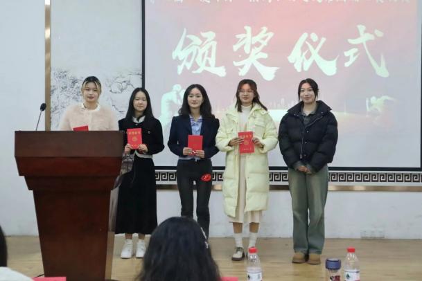 比赛共产生一等奖4名、二等奖8名、三等奖12名。赛后,评委刘娜、夏琳姝、郭婷为获奖同学颁奖并合影留恋。