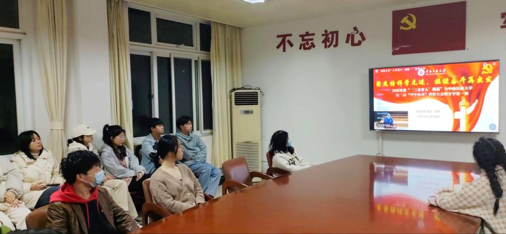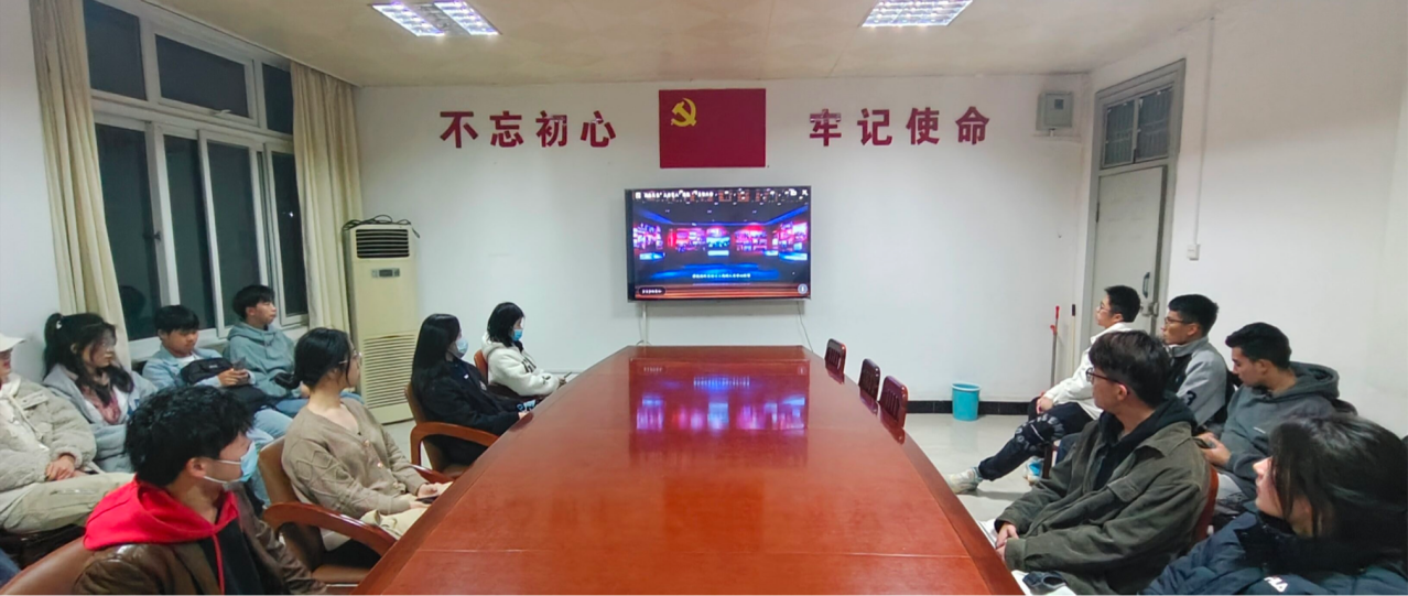 我院党委书记田野、院长王奎正、副书记李忠贤、学工办主任王晓微、班导师代表阮娇娇与十名学生代表现场出席大会。同时在文一楼308室设置分会场,安排班导师及学生骨干观看线上直播,并组织全体学生在宿舍同步收看。