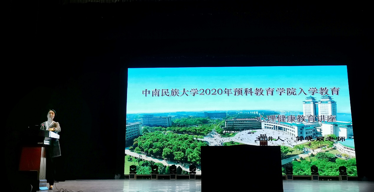 我院举办2020级学生心理健康教育讲座 (文/王娇,图何静宇巴亚夏提•乌拉孜哈力) 10月31日上午 10:00,预科教育学院在大礼堂开展了入学教育系列讲座之心理健康教育讲座。本次讲座邀请了华中科技大学心理中心副主任郭晓丽老师,由辅导员布佐热木·阿布力米提主持,全体预科2020 级新生参与学习。
