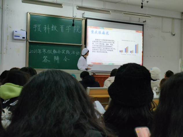 2023年2月23日18:00,我院在15栋教学楼321教室举办了2023年寒假社会实践答辩活动。学生工作办公室主任王晓微老师、新疆派驻武汉教师阿曼古丽老师、专职辅导员阮娇娇老师、兼职辅导员黄浩老师出席本次活动并担任答辩评委。