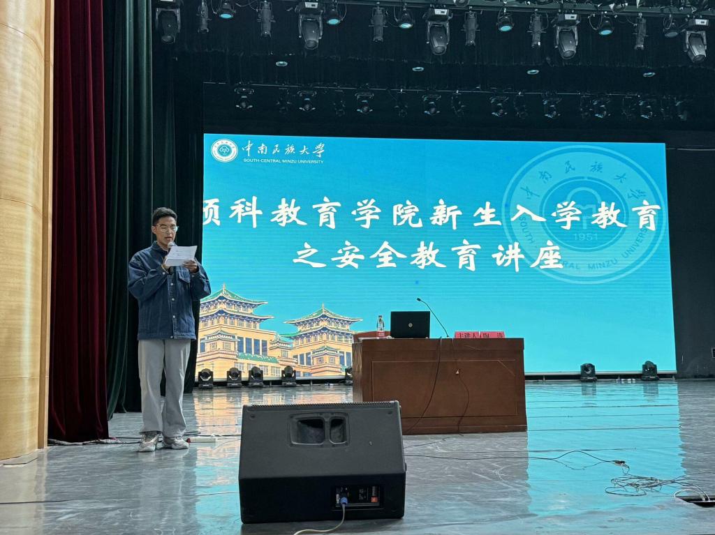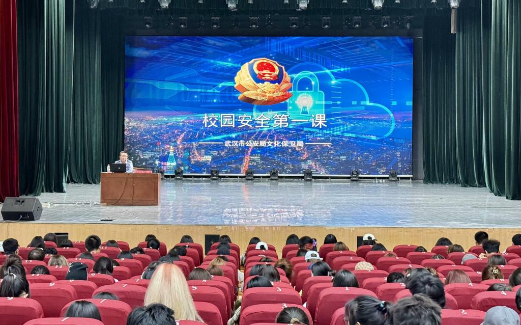 2024年10月27日下午17时,预科教育学院新生入学教育安全教育讲座在大礼堂举办。讲座由武汉市公安局文化保卫局东新工作站站长陶涛警官主讲,辅导员玛依拉带领2024级全体学生参会,团委学生会主席田龙臣主持。