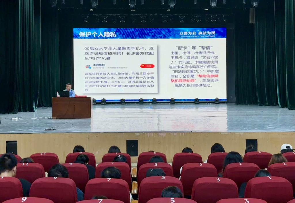 陶警官的讲解,为大家构建了一个全面的安全知识体系,通过重点解剖了“刷单返利”、“冒充熟人”等诈骗方式,通过真实的案例,让大家深刻认识到电信诈骗的危害性,有效普及了防诈骗知识。陶警官结合发生在高校中的典型案例,以案为鉴,警示教育,用通俗易懂的语言为大家讲解了相关安全预防知识和法律法规。让学生身临其境地体会安全教育的重要性,提醒大家时刻保持警惕性。同时,陶警官对校园里常见的网络刷单、刷信誉、断卡等相关案件进行了详细梳理,剖析犯罪分子的心态和被骗学生的心理,