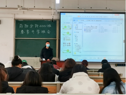 药物分析2001班班导师雷新响在教室召开班会,为同学们讲解“学校传染病及新冠肺炎防控知识与技能”、结核病防治知识,同学们还上台讲述了丰富多彩的寒假经历。药物分析1802班作为毕业班,重点围绕考研复试和春季招聘进行交流,同学们密切关注考研复试、调剂工作,对未来发展作出合理规划。