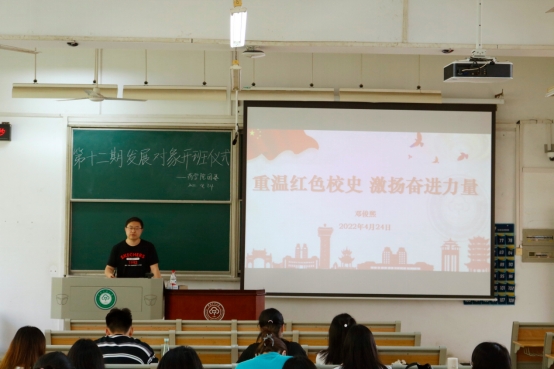 4月24日,药学院第十二期发展对象培训开班仪式暨第一、二次授课在11-312教室进行,学院全体发展对象参加。