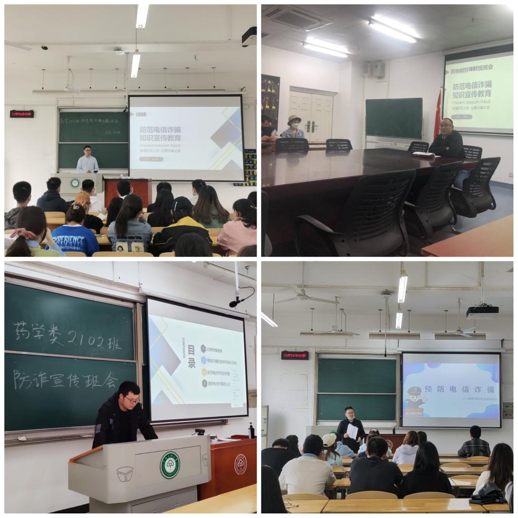 4月中旬,药学院班导师以线上开会及线下讲解的方式,组织召开主题班会,围绕“防范电信网络诈骗”开展讲解。
