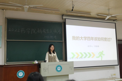 10月25日,药学院在11-100、11-200举办新老生经验交流会,2022级辅导员彭宇涵、兼职辅导员王玮淇及2022级全体学生参加。
