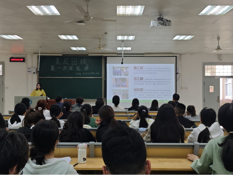 本次课程由院团委组织部干事张逸凡主持,院团委副书记王莹莹主讲。学生会团副张学及全体组织部成员与百余名团校学员共同参与了此次课程。