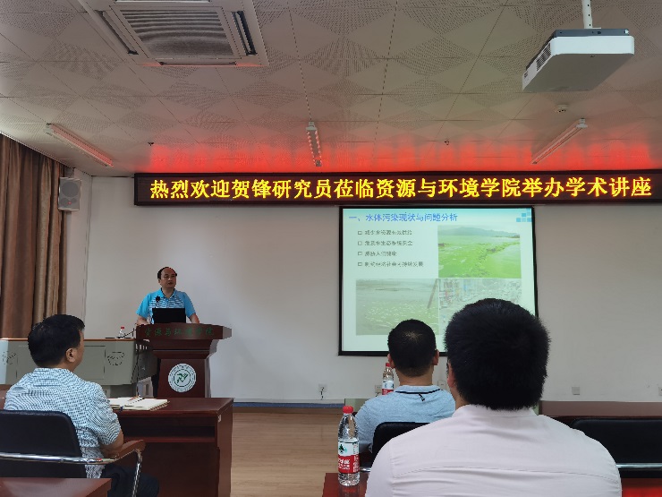 2021年7月13日下午,中国科学院水生生物研究所研究员,科研业务处处长,博士生导师贺峰研究员应邀为我院师生做题为《水体生态修复关键技术研发与工程应用》的学术讲座。此次报告由杜冬云教授主持,孙杰教授、叶恒朋教授等我院多名教师和全体研究生参加。