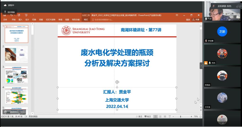 2022年04月14日下午,上海交通大学贾金平教授应邀为我院师生做了题为《废水电化学处理的瓶颈分析及其解决方案探讨》的线上学术报告。报告由孙杰教授主持,我院师生积极参加。