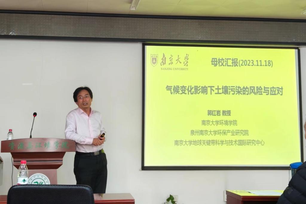 2023年11月18日下午,南京大学环境学院郭红岩教授应邀为我院师生做了题为《气候变化影响下土壤污染的风险与应对》的学术报告。报告由资环学院副院长徐志高教授主持,学院师生积极参加本次讲座。