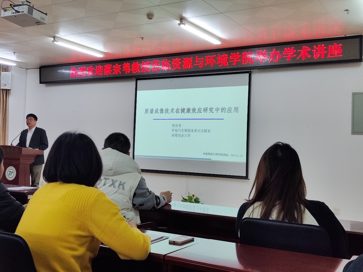 2023年11月20日上午,香港浸会大学蔡宗苇教授应邀为我院师生做题为《质谱在环境分析中的应用》的学术报告,本次报告由孙杰教授主持,学院师生积极参与本次讲座。