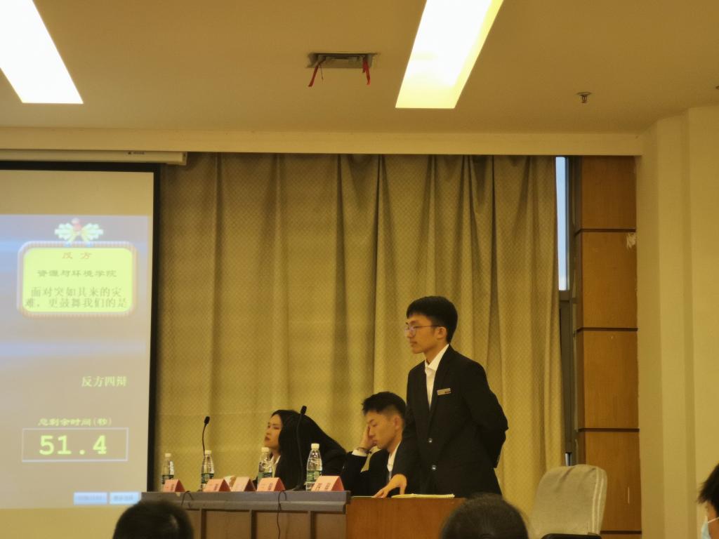 6点30分,随着主席开场致辞,辩论赛正式开始。正方从客观解决问题角度进行立论,认为英雄的背影事实层面更能给人带来安全感,进而达到更鼓舞效果;而反方认为面对灾难困境时,彼此歌声更能凝聚信念,其信念的力量能产生更大的鼓舞力量。正方除了开辟己论战场,一边就反方歌声的利弊性进行攻击,而反方划清论证义务,强调双方讨论的前提应在可鼓舞层面上去比较“更”,上半场反方局面略显被动。反方三辩在质询环节对定义明确切分和进攻,开始拉回局势。自由辩环节,正方推进论点的同时发起进攻。最后,双方四辩对本次辩论赛进行结辩,在对双方的攻防进行梳理的同时进行语境的渲染和价值的升华,引起观众共鸣。结辩结束,掌声雷动。
