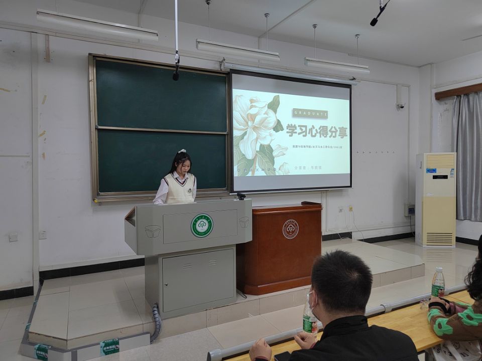 在优秀代表经验分享环节,四位分别获得国家奖学金、励志奖学金的同学依次结合自己的学习经历、学习方法分享了心得和经验。20级的敖俊朗同学分享了他从高考完到进入大学后的心路历程 ,然后在交流经验的过程中总结到在学习时应有积极上进的态度,在科研时应有勤奋努力的态度,在社会实践时应有负责踏实的态度。19级杨倩同学从大学规划、学习方法、学生工作、社会实践活动等方面向在座的同学分享了自己的心得感悟。她指出,作为一名大学生,应自律自觉自立,确立好不同时期的目标,搞好学业的同时要积极参与各项活动以提升自身综合素质。杨秀端同学在分享中告诫同学们要养成良好的学习习惯,探寻适合自身的学习规律,学会取舍。她着重强调了拓展个人技能和提升获取信息整合资源的能力的重要性。最后上台的是韦晓福同学。回望自身求学经历,她鼓励大家要找到前进目标,发挥榜样的力量让自己变得更加优秀。同时要对自己充满信心,化压力为动力,为成为自己想成为的人而不断去努力去奋斗。