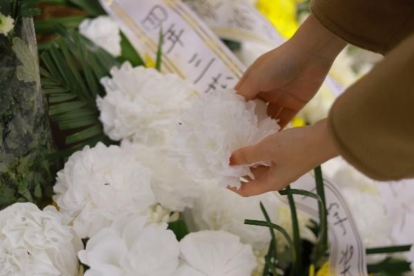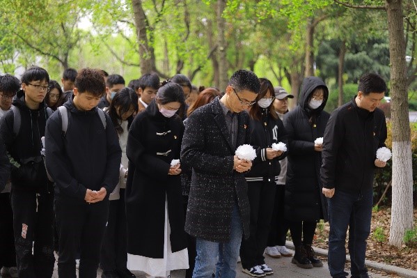 随后,全体成员肃立默哀一分钟,接着师生一道向吴泽霖先生雕像三鞠躬,献上一对花篮和师生们亲手制作的白花,以表达深深感激和无限哀思之情。
