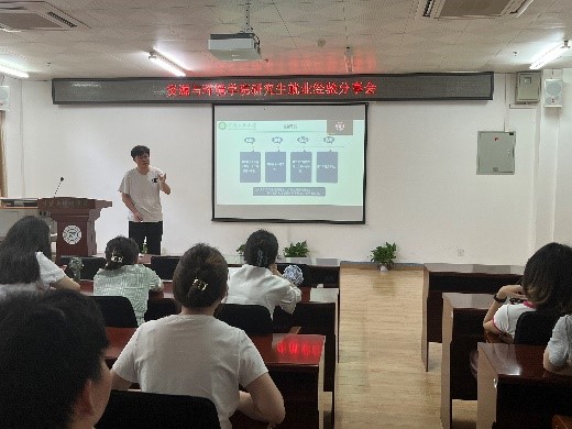 为深入贯彻党的二十大精神和委属事业单位改革发展会精神,破解学生就业难问题,推动研究生就业工作高质量开展,6月1日上午,资环学院于13号楼261报告厅举办研究生就业经验分享会。本次分享会邀请了陈金宝、尹智明、石乐琪和李德芬娜4位优秀的2020级毕业研究生分享求职及面试经验,活动由院研究生会主席王之主持,全体2021级、2022级研究生参与了本次活动。