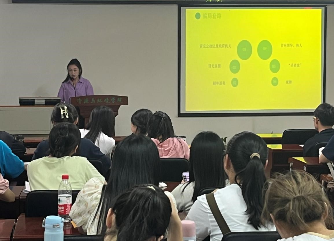 会上,刘瑾老师向研究生新生介绍了入学事宜,希望同学们在入学初期不要焦虑,积极融入校园生活。她着重强调了要研究生提高纪律意识、校园安全防范、反诈意识等。她借用电影《孤注一掷》中的一句话:“人有两颗心,一颗是贪心,一颗是不甘心”,告诫同学们要放下自己的这“两颗心”才是远离诈骗的最好办法。