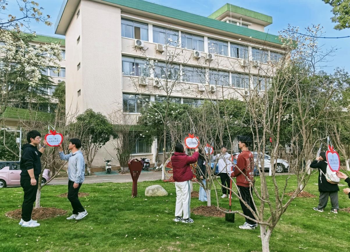 同学们给石榴树挂“团结牌” 资环学院摄
