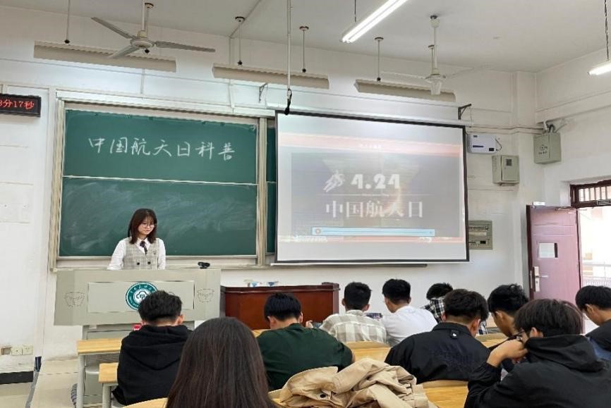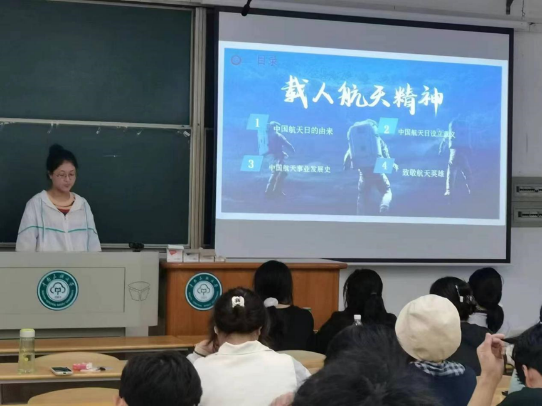 中国航天日,是为了纪念中国航天事业成就,发扬中国航天精神而计划设立的一个纪念日,其主旨是要铭记历史、传承精神,激发全民尤其是青少年崇尚科学、探索未知、敢于创新的热情,为实现中华民族伟大复兴的中国梦凝聚强大力量。资环类2302班蔡博轩、环科2201班李碧涵带领同学们学习了载人航天精神,2306班贾世颖带领大家观看了航天科普视频,各班通过多种方式引领学生学习中国航天精神、载人航天精神、两弹一星等知识,传承航天精神。