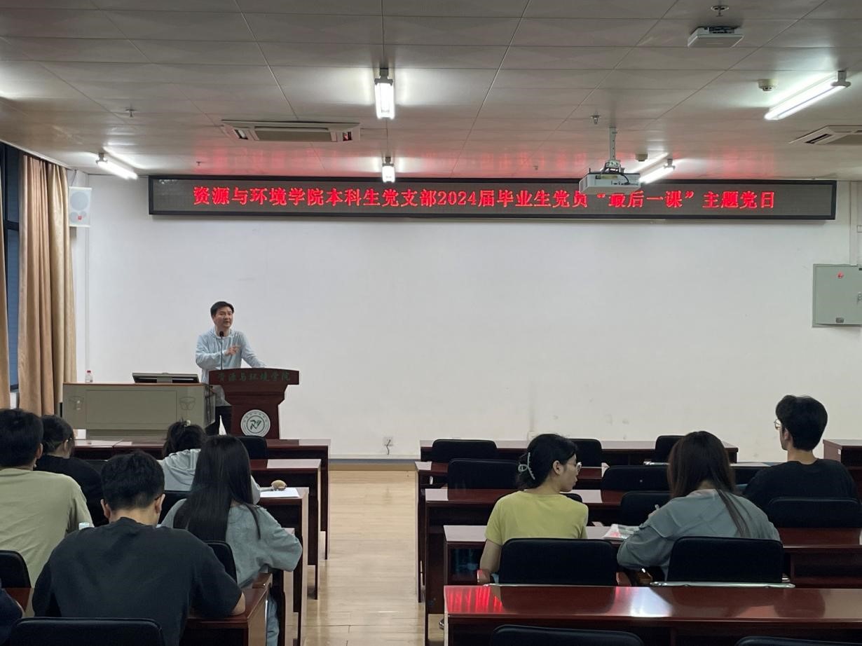 为进一步做好毕业生党员教育,激发党员使命担当,6月11日晚,资环学院本科生党支部于13栋261报告厅开展“凝心铸魂担使命,挺膺担当新时代”毕业生主题党日活动。党支部书记黄晴和全体2024届毕业生党员参加活动。