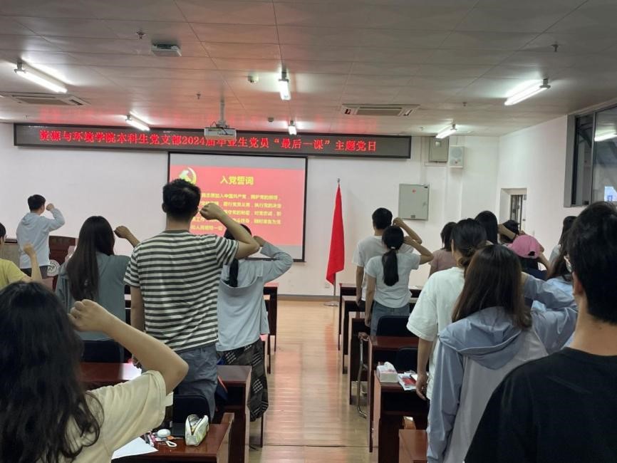 此次主题党日活动在全党上下开展党纪学习教育的重要时期,在毕业生党员离校之际通过党纪大课、重温入党誓词等形式为其上好“最后一课”,引导毕业生党员在今后新的学习或工作岗位上继续发挥先锋模范作用,在强国建设、民族复兴的伟大征程中扛起新担当、展现新作为、做出新贡献。