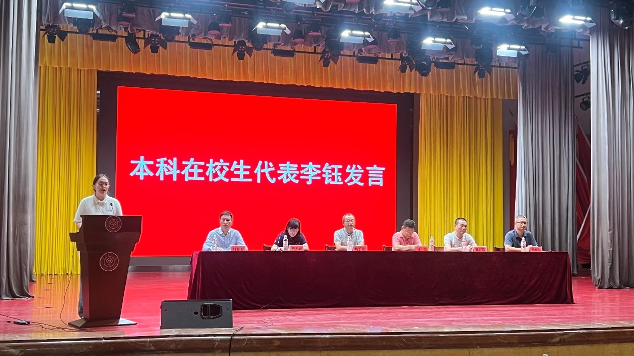 本科在校生代表、环科专业2021级学生李钰分享了自己在大学三年的成长历程。她从学业、科研、社会服务三方面介绍自己的收获和感想,鼓励新生积极尝试,全面发展自己。