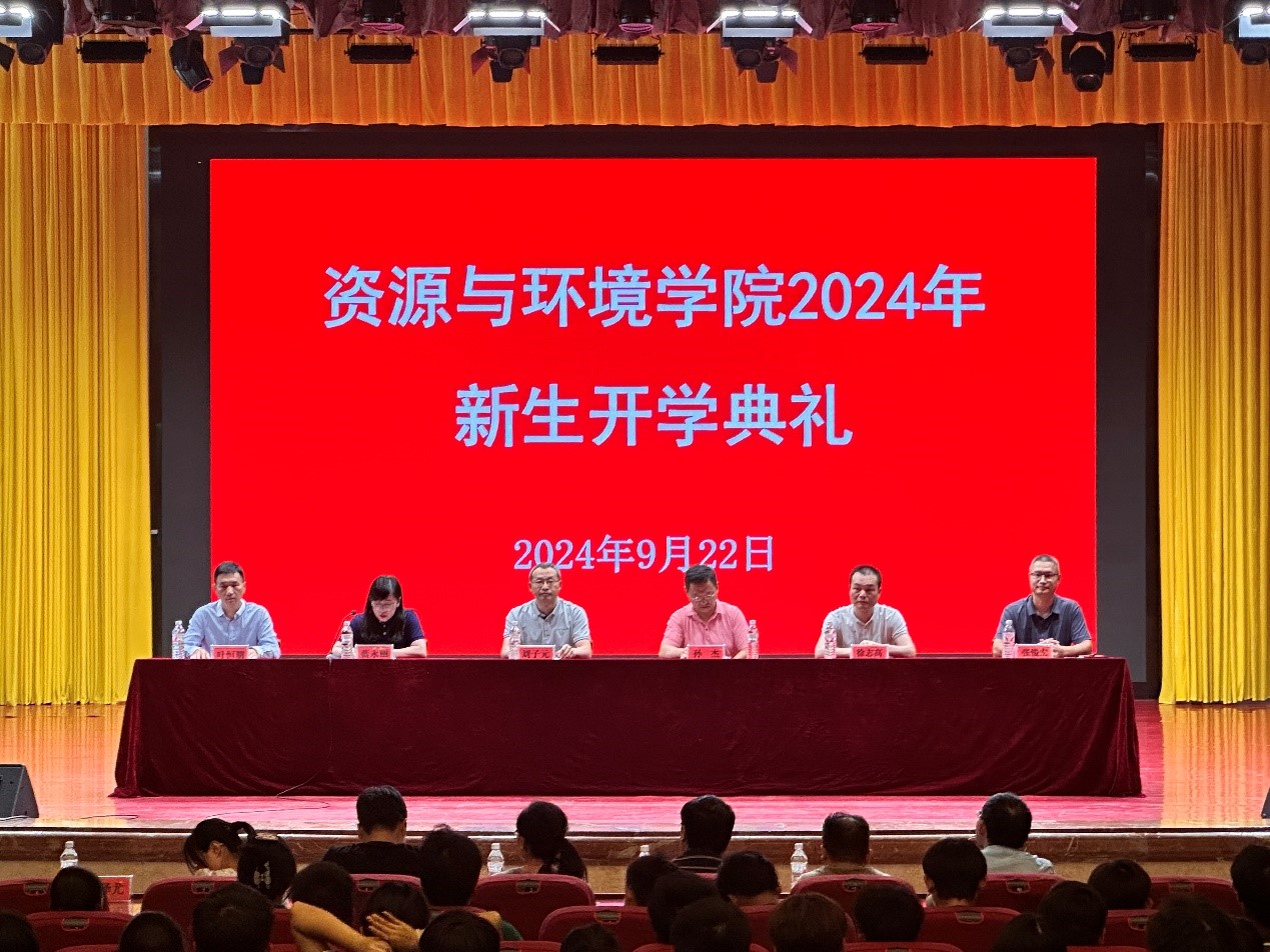 9月22日下午,资源与环境学院于学术会堂举行了2024年新生开学典礼。学院党委书记刘子元,党委副书记、院长孙杰,党委副书记蓝永丽,副院长徐志高、叶恒朋、张俊宏出席,各教研室主任、班导师、辅导员、新生班助和2024级本科新生参加了典礼。典礼由蓝永丽主持。