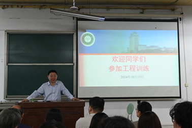 在工程训练动员大会上,未来城科技园管理办公室贺军副主任为同学们对接下来工程实训的整体情况做了讲解,鼓励同学们努力学习、拓展眼界,认识和学习新科技技术,感受中国技术、中国制造,培养精益求精、追求卓越的科学精神,并预祝同学们在本次实训中取得优异成绩。