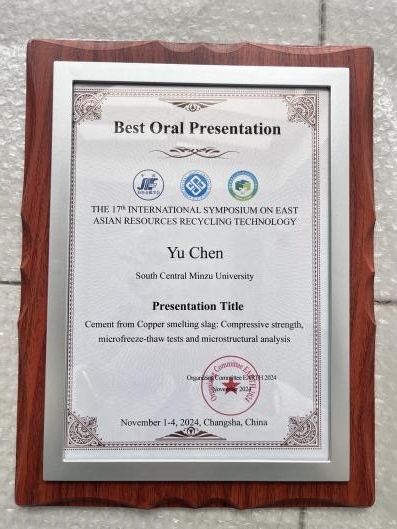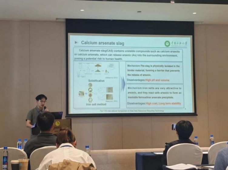 会议设置6个主体论坛、2个研究生论坛,330余位专家学者围绕资源循环利用进行了深入交流。100余位研究生在论坛上做报告交流。我院4位研究生在导师杜亚光的带领下参加了会议,三位研究生在会议上做了报告。杜亚光在大会上做了题为《A novel way to prepare battery-grade FePO4·2H2O from copper slag》的邀请报告。